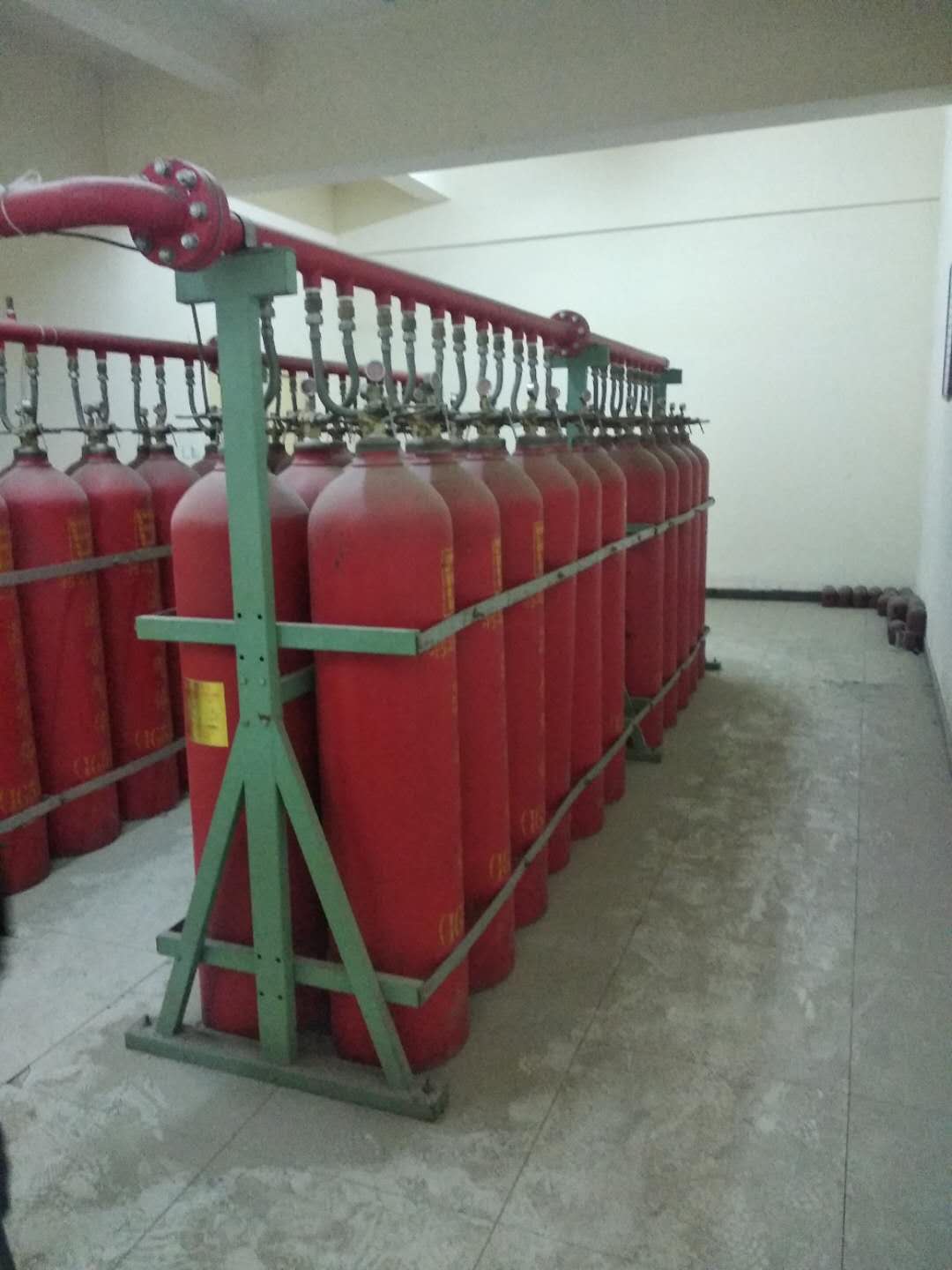 6) 將驅動氣體瓶組組架放置于儲瓶間,保證瓶組架平穩無晃動。